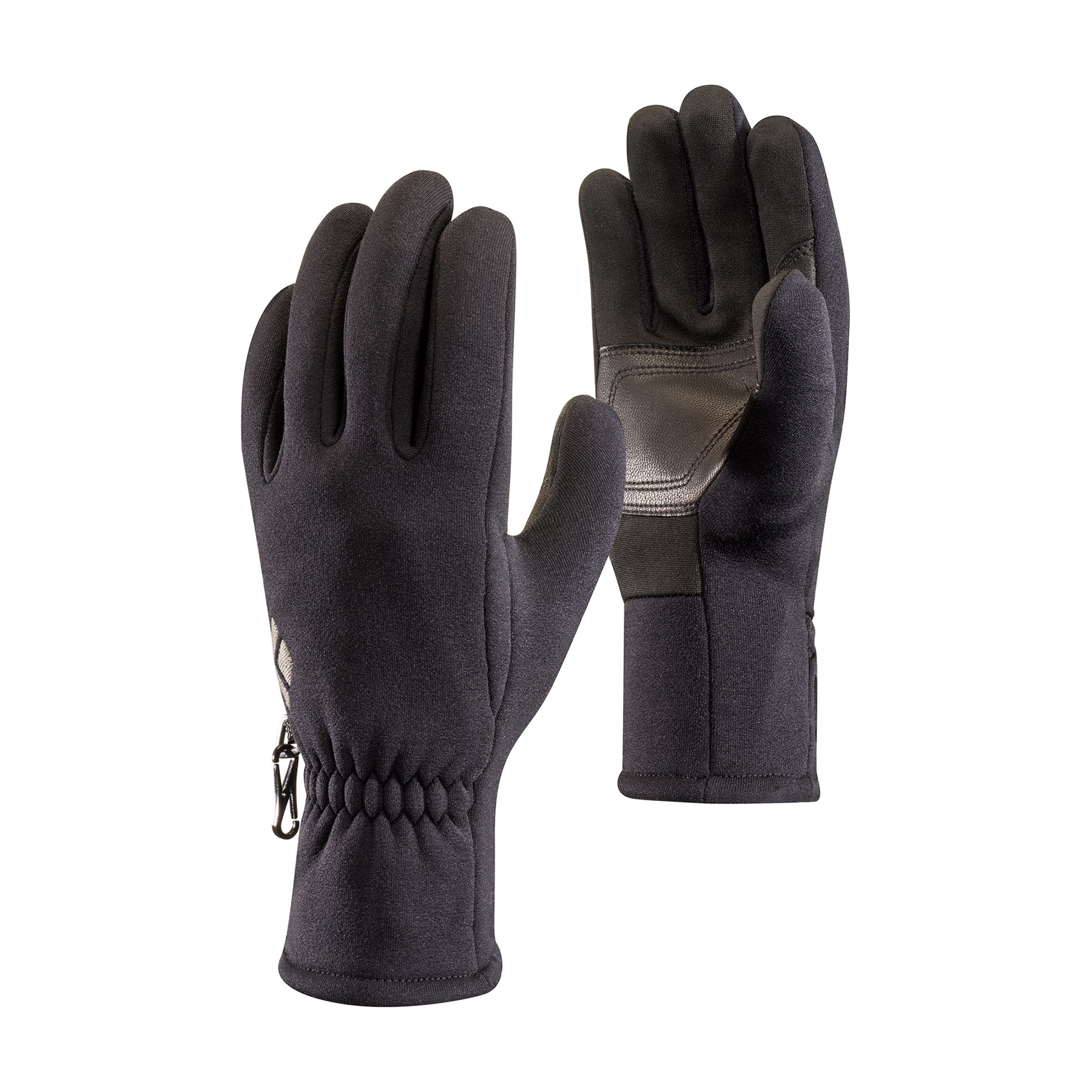 Warm, stretchy mitts with the added benefit of full touchscreen functionality, the Black Diamond HeavyWeight ScreenTap gloves are ideal for skiing, trail running or hiking with your smartphone. We started with a warm and stretchy Polartec Power Stretch fleece shell, then covered the entire palm with U|R Powered material to allow for gloves-on touchscreen use. Goat leather palm patches offer a secure grip on poles, dog leashes and apr?s beers.