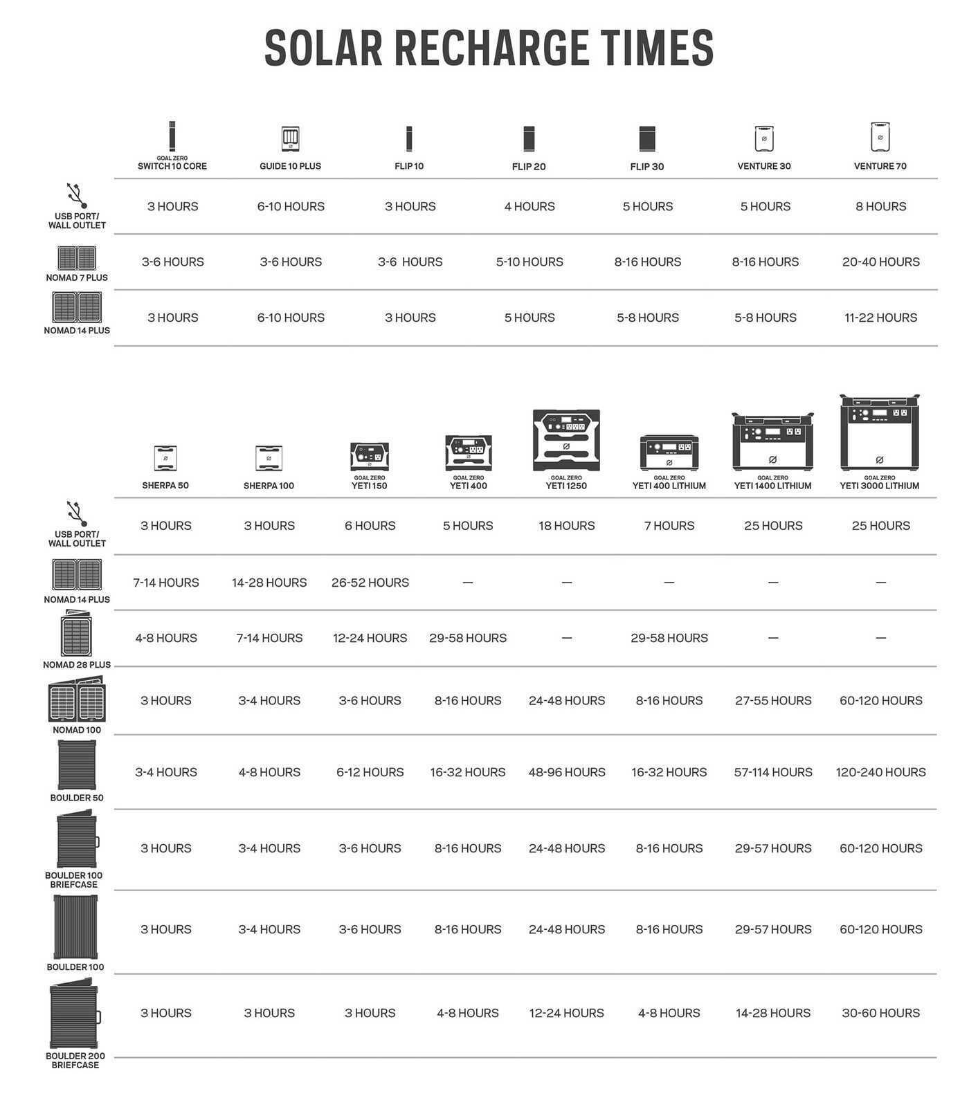 The Nomad 100 can be used to power any Goal Zero Yeti or Sherpa.