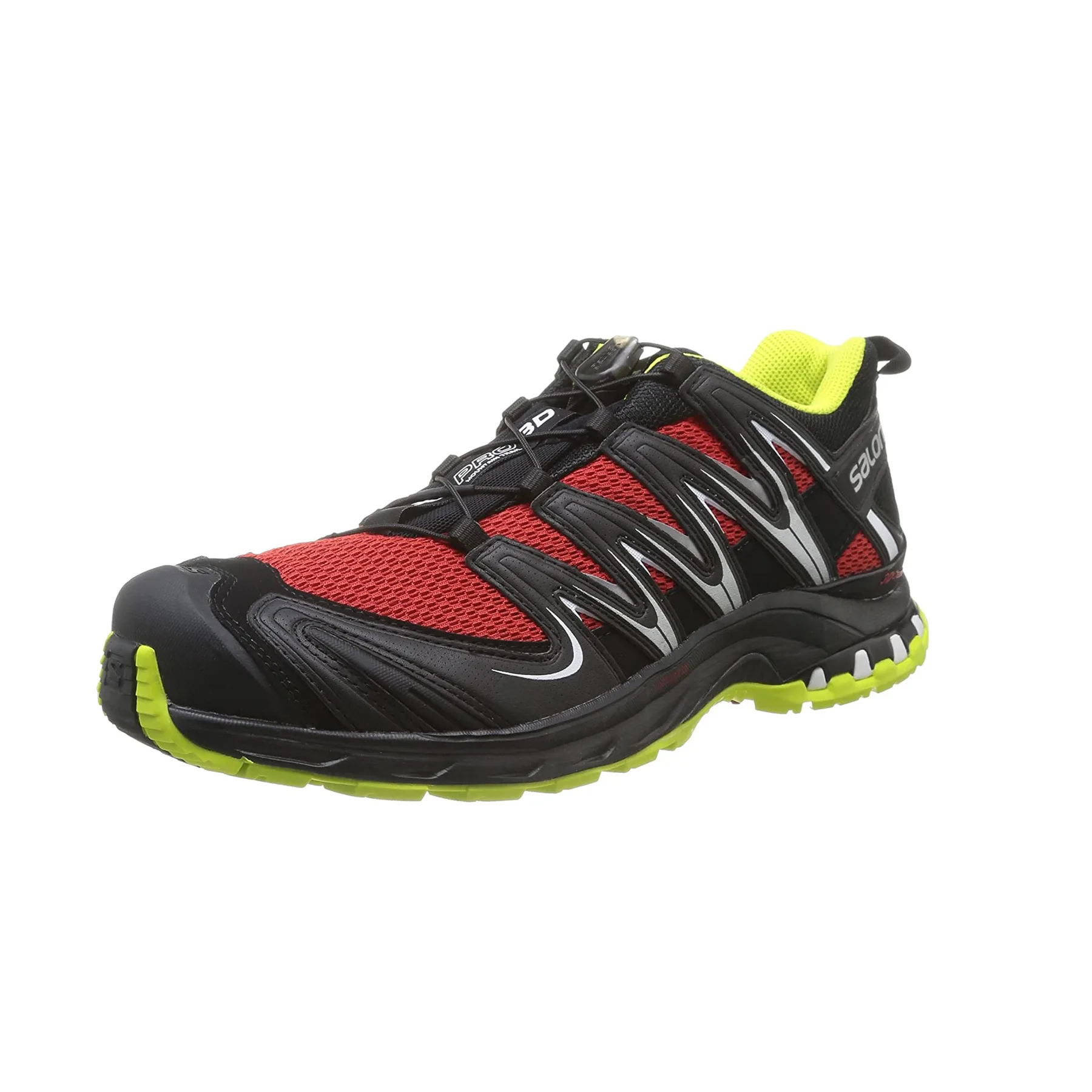 Whatever the weather, terrain or distance, the Salomon XA Pro 3D Trail Running Shoe has you covered. Designed for the most demanding of trails, a streamlined profile offers substantial durability and unrivalled protection from the elements. One of the most imitated trail running shoes on the market continues to evolve, with a new chevron tread pattern and streamlined profile. A stable 3D chassis provides comfort and protection on rough trails whilst a Quicklace system delivers fast, precise fit adjustment.
